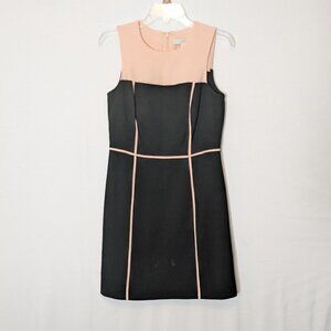 LOFT Black/Peach Knee Length Sleeveless Straight Sheath Dress; Size 4