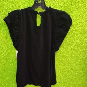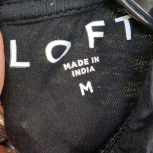 This elegant black blouse from LOFT features a sophisticated mandarin collar and charming ruffled details. The blouse's design offers a stylish and comfortable fit, making it a versatile addition to any wardrobe.