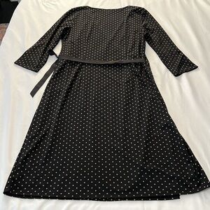 LOFT Black/Taupe Polka Dot Wrap Dress with Ribbon Tie