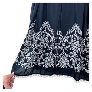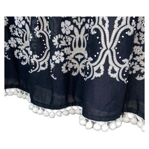 LOFT Black/White Floral Beaded Pom Pom Trim Pleated A-Line Skirt Sz 8P