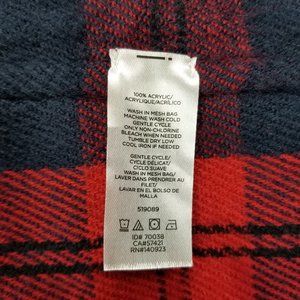 LOFT Blanket Flannel Shawl Wrap Poncho One Size Red & Blue Oversized Scarf NWOT