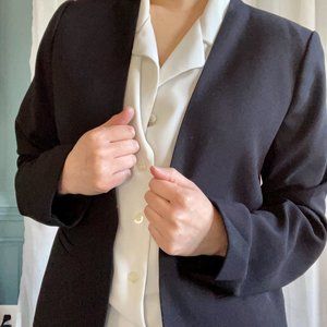 - Black blazer, light shoulder padding