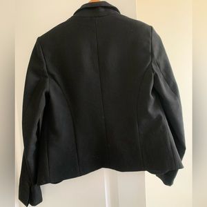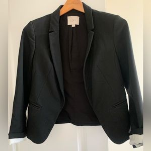LOFT petite black blazer. Like new with extra button inside. Sleeve can be rolled back with white checkered design inside cuff.
