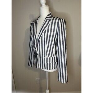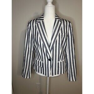 LOFT Blazer Jacket Cotton Blend May White Stripes Sz 6 NWT Nautical Preppy #1388