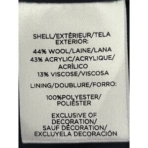 The LOFT Blazer is a stylish and versatile women's jacket in a size 10, featuring a burgundy blue wool tweed fabric with a collarless full zip design. Perfect for travel, casual, or business occasions, this blazer has a regular fit with long sleeves and features a pinstripe pattern and inner pockets. The 100% polyester lining ensures comfort, and the 23-inch inseam makes it a great addition to any pant suit ensemble. Made by LOFT, this blazer captures a classic and colorful theme, ideal for the winter and fall seasons.