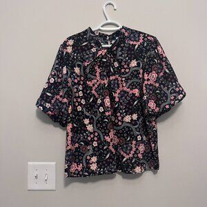 LOFT Bloom Twist Bubble Sleeve Blouse Size XL