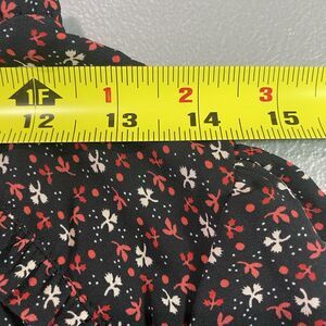 LOFT Blouse Floral Ruffle Trim V-Neck Puff Long Sleeve Pleated Womens S Black
