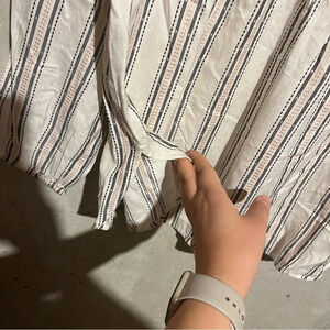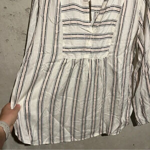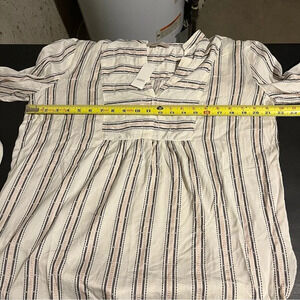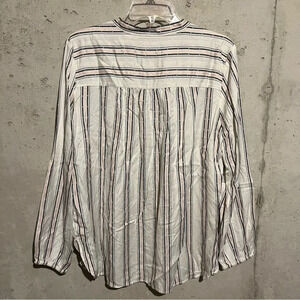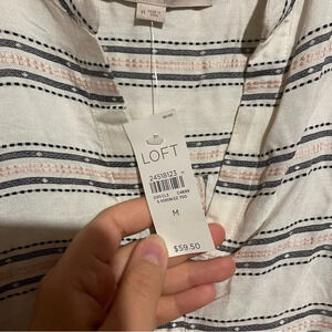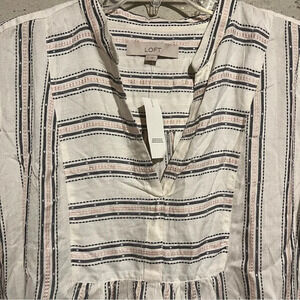 LOFT Blouse NWT Womens Medium White Striped Rayon Balloon Sleeve V Neck