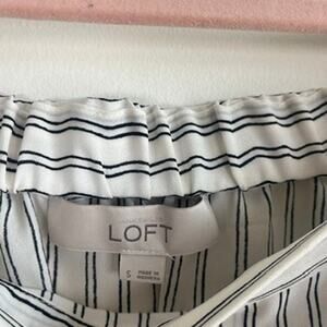 LOFT Blouse Off Shoulder Tier Bell Sleeve Ribbon Striped White Black Size Small