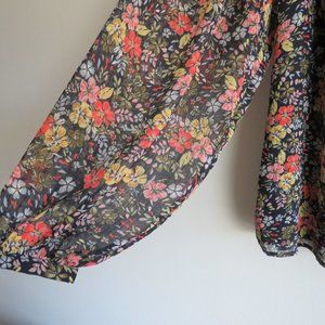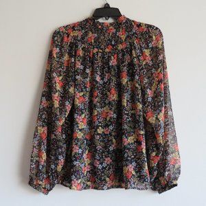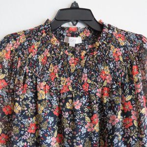 LOFT Blouse Shirred Yoke Neck Long Sleeves Abstract Print Women’s Blouse S