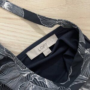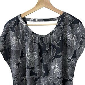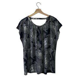 LOFT Blouse Size Medium Mixed Media Strappy Cut Out Floral Dark Gray Top 70054