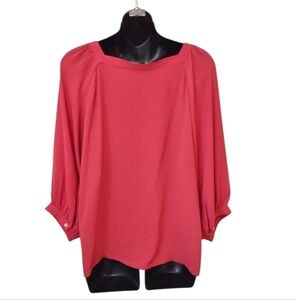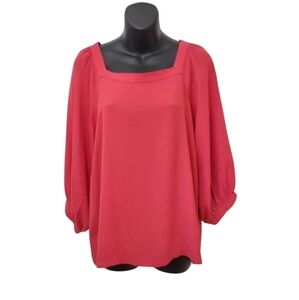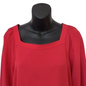 LOFT Blouse Women's Red Square Neck 3/4 Wide Sleeve Top Size S