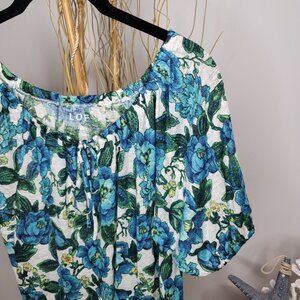 LOFT Tie Front Floral Linen Blouse