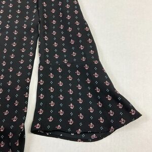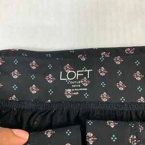 LOFT Blouse Black Printed Bell Long Sleeve Shirt Button Keyhole Top PM Petites
