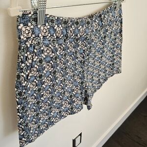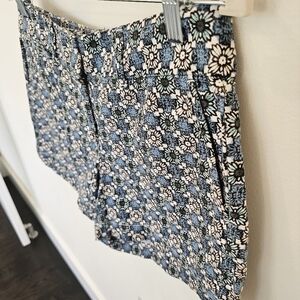 LOFT Blue Brown Mod Floral Print Linen Cotton Blend Riviera Shorts Size 2