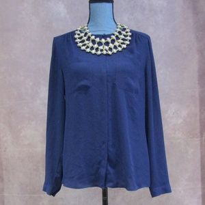 LOFT Blue Concealed Button Blouse Size M