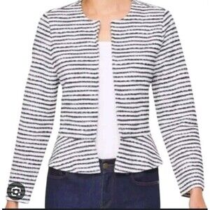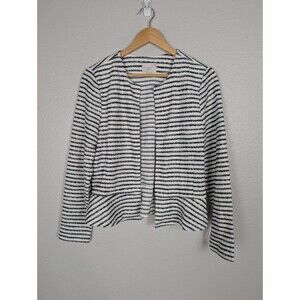 LOFT Blue Cream Striped Open Cardigan Jacket S