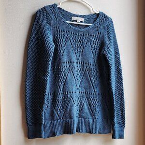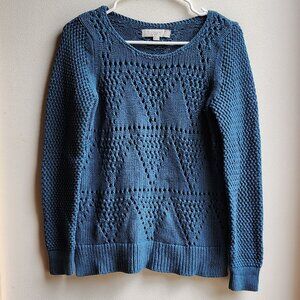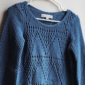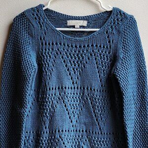 LOFT Blue Diamond Perforated Scoop Neck Sweater Size XS