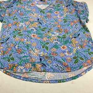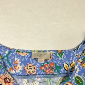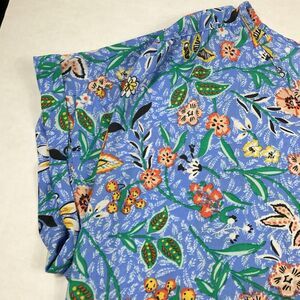 LOFT Blue Floral Boho Blouse XL Flutter Sleeve Lightweight Top Cottagecore Shirt