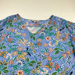 A colorful and breezy LOFT blouse featuring an allover floral print. Effortless and relaxed fit with short sleeves—perfect for warm weather or layering under a cardigan.
