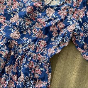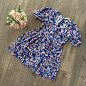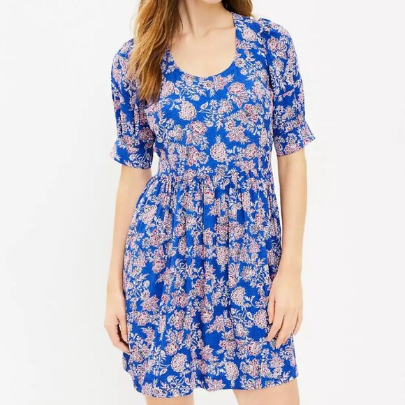 LOFT Blue Floral Puff Sleeve Babydoll Style Dress