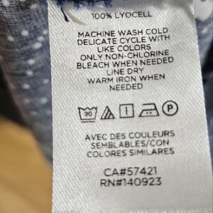 This elegant sundress from LOFT features a beautiful blue base with a delicate white polka dot and floral pattern. Designed for casual and work occasions, it boasts a flattering square neckline and charming flutter sleeves. The dress's classic A-line silhouette offers a timeless appeal, perfect for any relaxed setting.