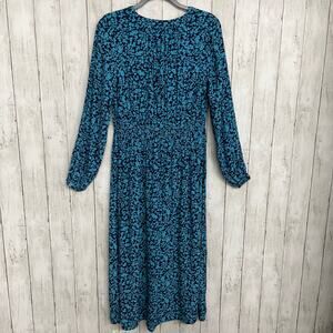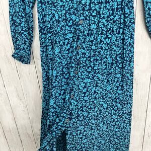 LOFT Blue Long Sleeve Lightweight Floral Button Front Flowy V Neck Shirt Dress 6