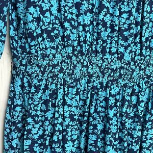 LOFT Blue Long Sleeve Lightweight Floral Button Front Flowy V Neck Shirt Dress 6