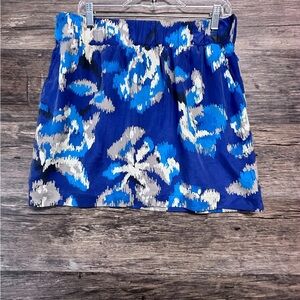 This blue mini skirt by LOFT is designed for relaxed resort wear, offering a vibrant and artistic pattern that stands out. Its lightweight fabric and above-the-knee length make it a breezy choice for warm weather. The skirt's simple design ensures comfort and style for any casual outing.