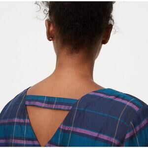 Chic and easy to wear, this LOFT plaid swing top is a versatile wardrobe staple. Designed with a relaxed swing silhouette, statement flare sleeves, and a feminine keyhole back detail, it offers both comfort and style. The blue plaid print gives it a timeless, casual feel that pairs perfectly with jeans, trousers, or skirts. A great transitional piece for workdays or weekends.