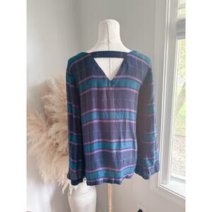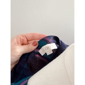 Tags: LOFT swing top, plaid blouse, flare sleeve top, blue checkered shirt, casual plaid blouse, LOFT women’s XS, keyhole back top, fall blouse, LOFT flare sleeve swing top, preppy plaid shirt, versatile office blouse, casual chic plaid