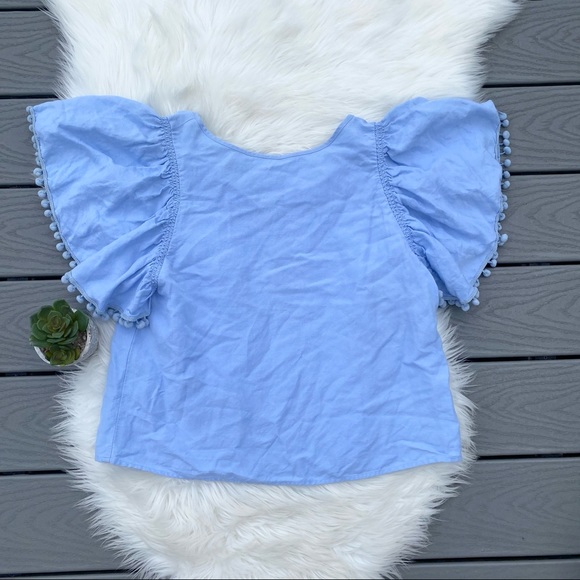 LOFT Blue Ruffle Sleeve Top