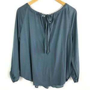LOFT Ann Taylor Womens Blue Silky Tie Back Pleated Crew Neck Blouse Top. Size Small. Great condition. No stains, rips, or holes.