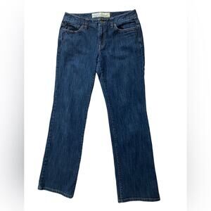 Experience timeless style with these LOFT blue straight leg jeans, featuring a medium to dark blue wash and classic golden stitching. The full-length design offers a versatile fit, perfect for any occasion. Crafted from quality denim, these jeans provide both comfort and durability.