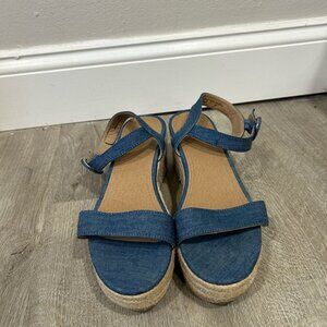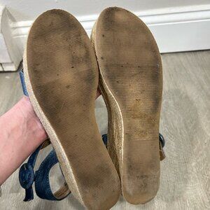 LOFT Blue Tan Espadrilles Wedge Platform Ankle Strap Sandal Women’s Size 9
