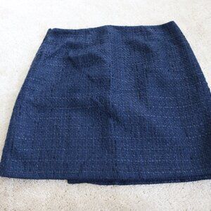 LOFT Blue Tweed Skirt with Gold Buttons