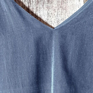 Elegant blue velvet tank top. Sleeveless with a V-neck design. Perfect for layering or wearing alone.