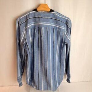 Classic and versatile, this LOFT striped blouse is perfect for work, weekend, or layering. Featuring a vertical white stripe print on a chambray-blue background, it offers a lightweight, easy-to-wear style that flatters in every season.