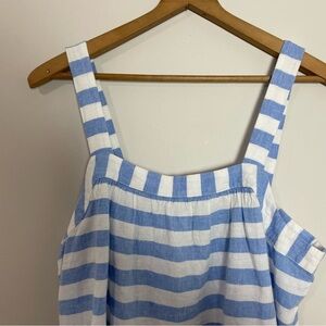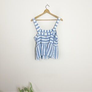 [LOFT] Blue & White Striped Linen Blend Peplum Sleeveless Tank Top