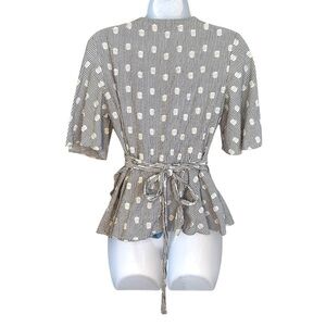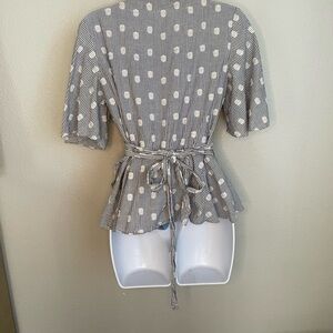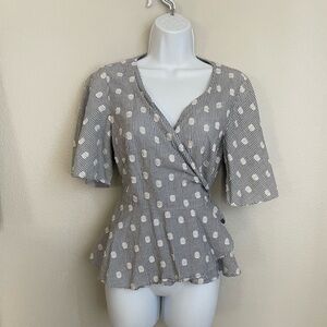 LOFT Blue White Striped Polka Dot Wrap Peplum Top Cotton Blend Short Bell Sleeve