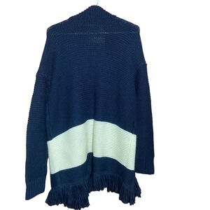 LOFT Blue White Striped W/ Fringe Accent Knit Open Cardigan Sweater Size Medium