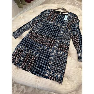 Chic LOFT dress with intricate patterns. Features a mix of blue and black. Perfect for any occasion.