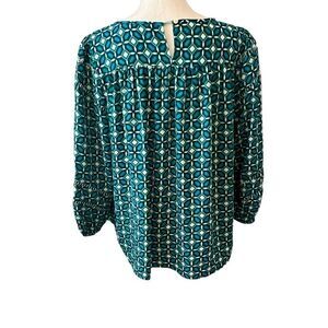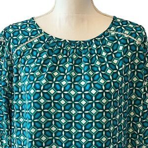 LOFT Blue and Green Long Sleeve Tunic Blouse Size Small