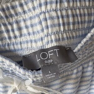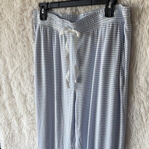 Comfortable striped pajama pants. Elastic waistband with drawstring. Soft and cozy fabric.