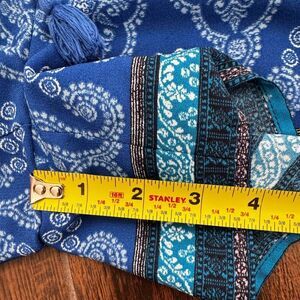 • Color: Blue with paisley and border print in teal, navy, and white