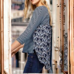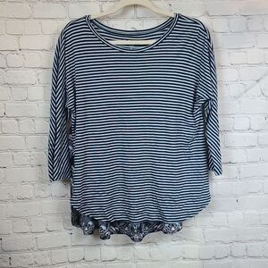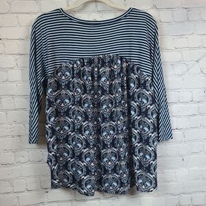 LOFT Blue Mixed Media Top Women's Small Blouse Striped/Paisley Chiffon/Knit Tee