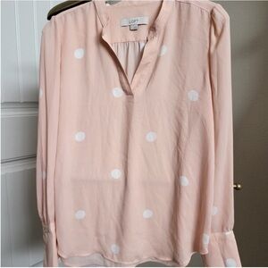 LOFT Blush Pink Blouse with White Polka Dots Size Small