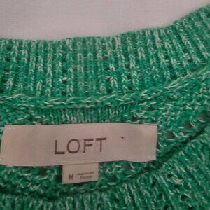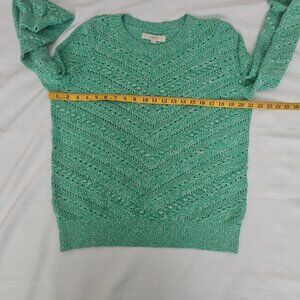 LOFT Bobble Pointelle Balloon Sleeve Pullover Knit Sweater Green Size Medium