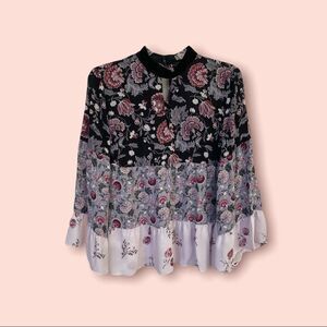 LOFT Boho Floral Keyhole Swing Top Size XS NWT