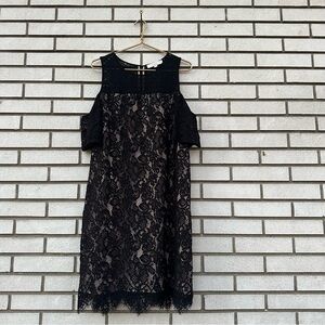 LOFT Boudoir Cold Shoulder Lace Dress Black